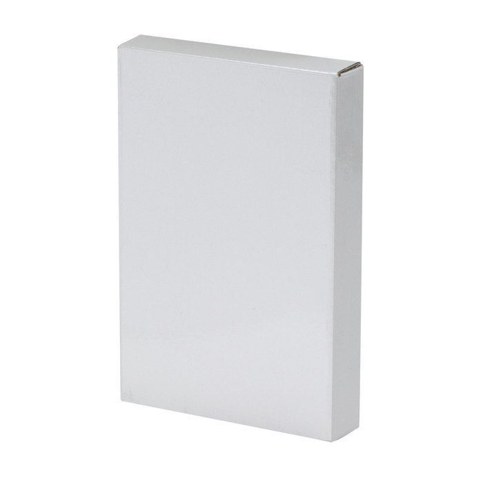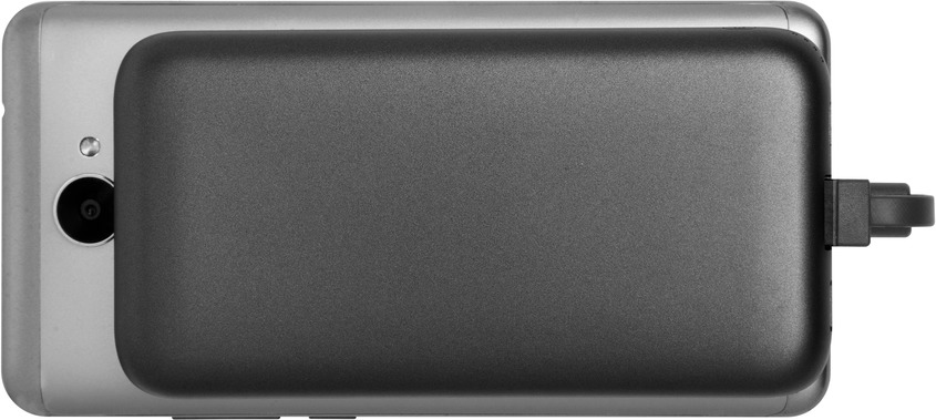 13 x 6,6 x 1,1 cm. Plástico. Capacidad 4000 MAH. Power Bank. En la parte de atrás engomada con ventosas que permite la adhesión en el dispositivo que se está cargando. Cuenta con espacio para guardar el cable USB. Dos entradas: una mini USB que permite cargar Iphone y Android y una entrada USB. Botón de encendido y luces indicadoras de carga en el lateral inferior. La parte de adelante lisa con amplio espacio para personalizar. Presentación en caja de regalo.