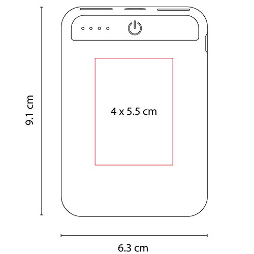 Batería auxiliar para smartphone con linterna LED, capacidad 6,000 mAh y 4 LEDs indicadores de carga. Cuenta con 2 salidas USB y entrada micro USB. Incluye cable cargador compatible con USB y micro USB.
