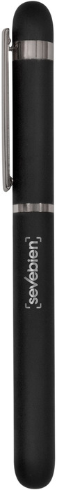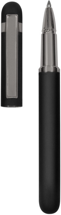 Metal. Cuerpo de aluminio. Roller. Apertura con tapa a presión. Clip y anillos metálicos color plata. Tinta Negra. Destapa color plata tanto en el cuerpo como en la tapa. Presentación en estuche con cierre magnético.