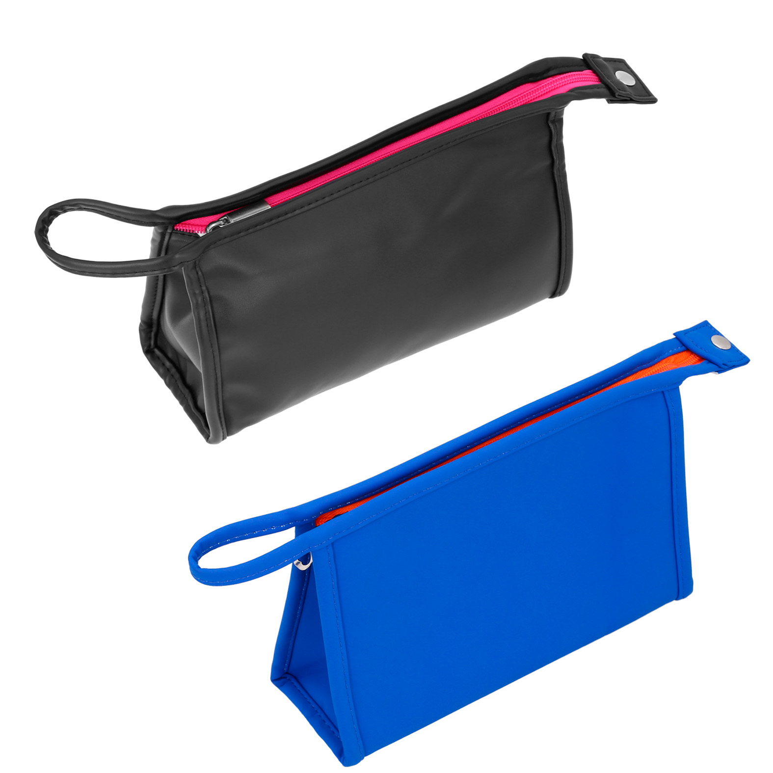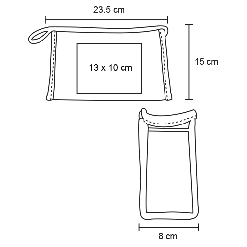 Cosmetiquera con forro. Cuenta con cierre superior y dos compartimentos interiores de malla.