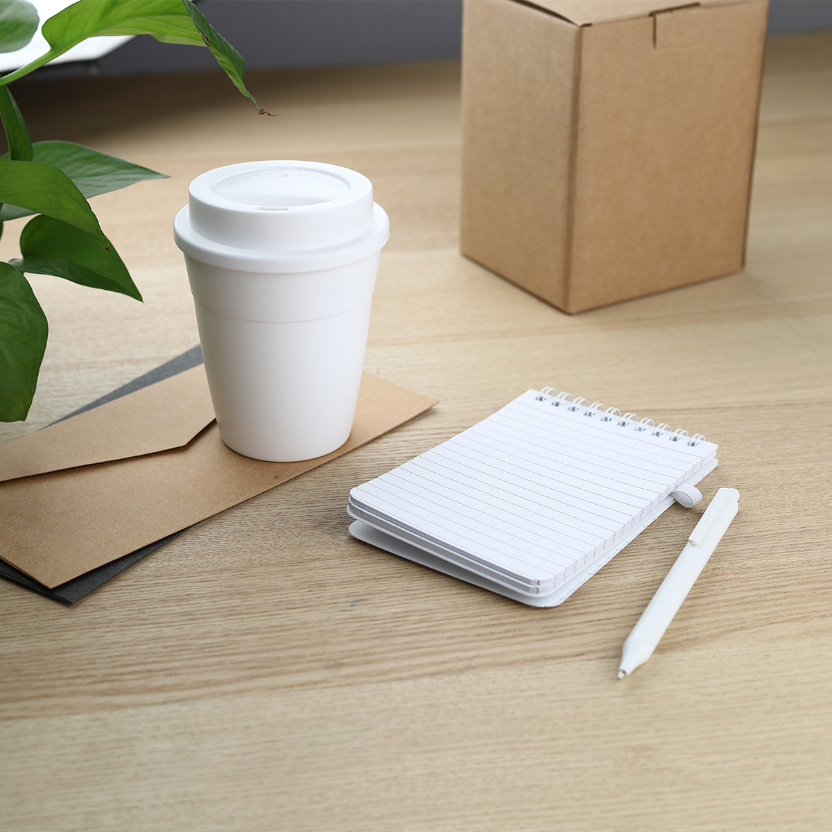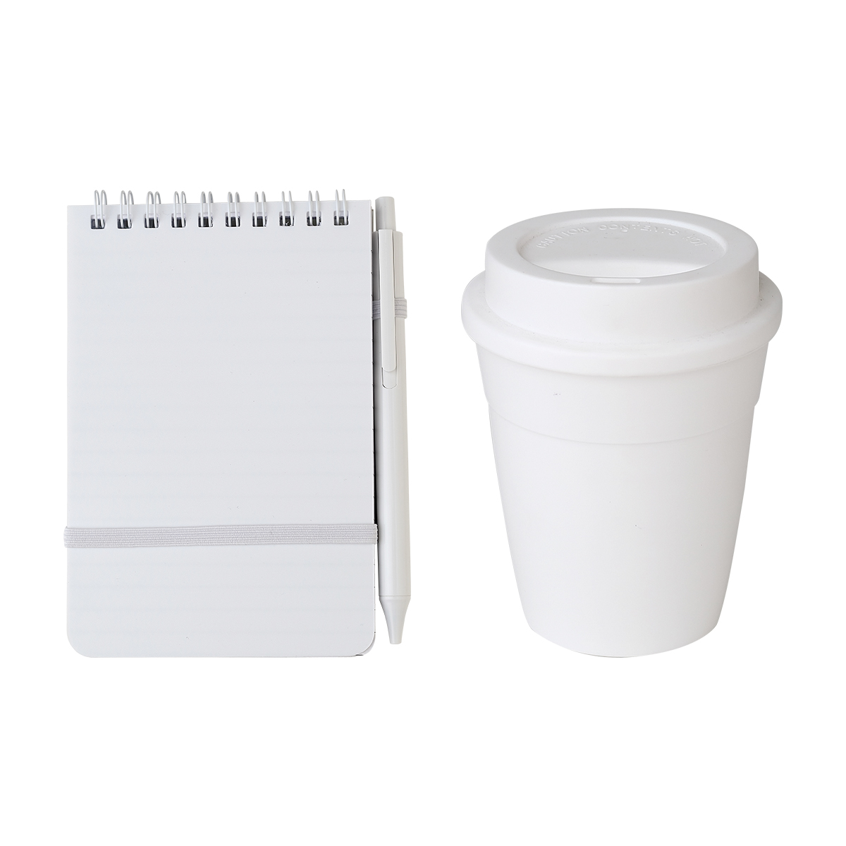 Set fabricado en ABS con material Antibacterial (iones de plata). Incluye vaso para café de 350ml, mini libreta para notas y bolígrafo de tinta negra. Fabricado en material Antibacterial con certificación ISO 22196 que inhibe hasta en un 99.9% el crecimiento y multiplicación de bacterias. El aditivo tiene como base los iones de plata, tecnología que que ha sido reconocida y utilizada durante siglos y que no tiene efectos dañinos. Incluye caja de cartón individual.
