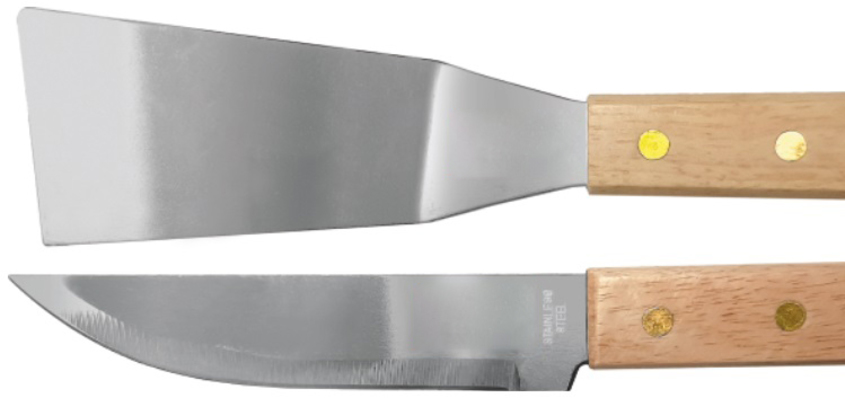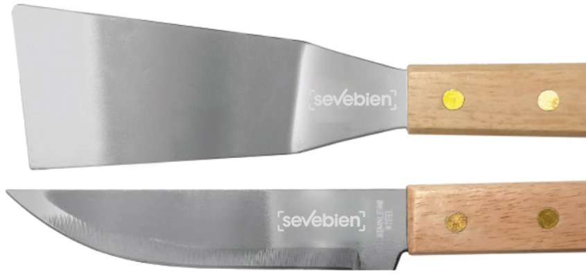 Ø 11,5 x 42,5 cm. Acero inoxidable y madera + Poliéster 210D. Set de 10 piezas: Espátula, tenedor parrillero con mango, pinza, cuchilla, 2 pinchos para brocheta y 4 pinchos pequeños. Estuche con cierre y correa regulable.