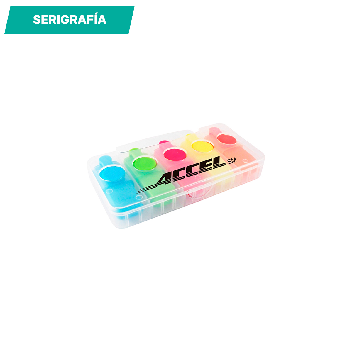 Juego de 5 marca textos de colores vibrantes en estuche de plástico transparente. Es perfecto para subrayar, colorear y rotular sobre papel, brindándote una forma fácil y eficaz de resaltar información relevante en tus documentos. Diseño portátil y colores llamativos.
