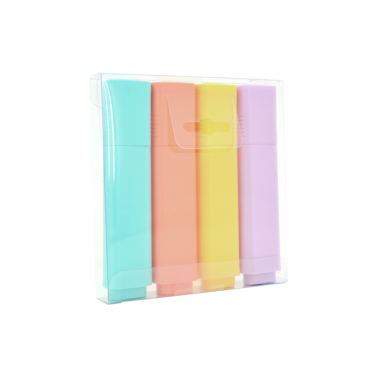 Set de 4 marca textos en colores pastel,  con estuche de PVC. Ideal para resaltar y dar vida a tus notas y documentos.