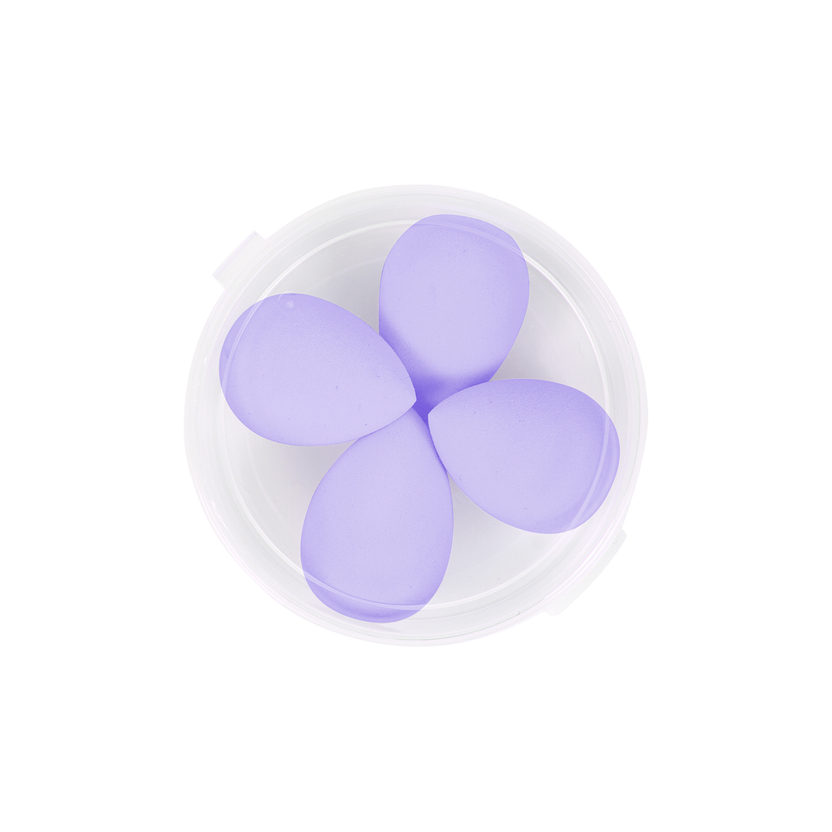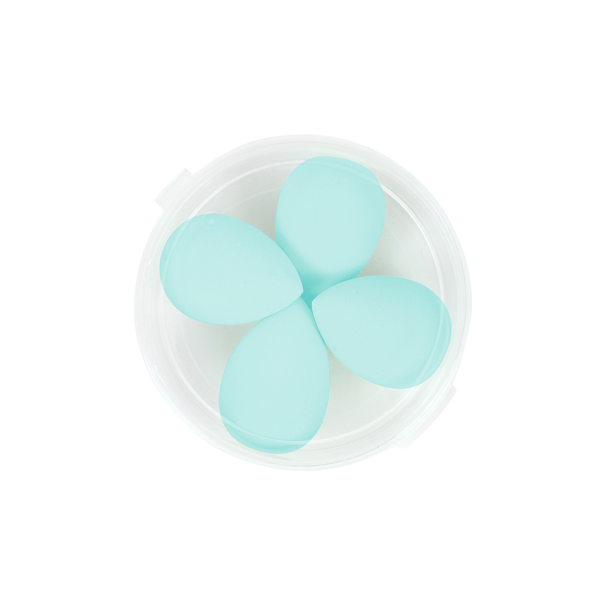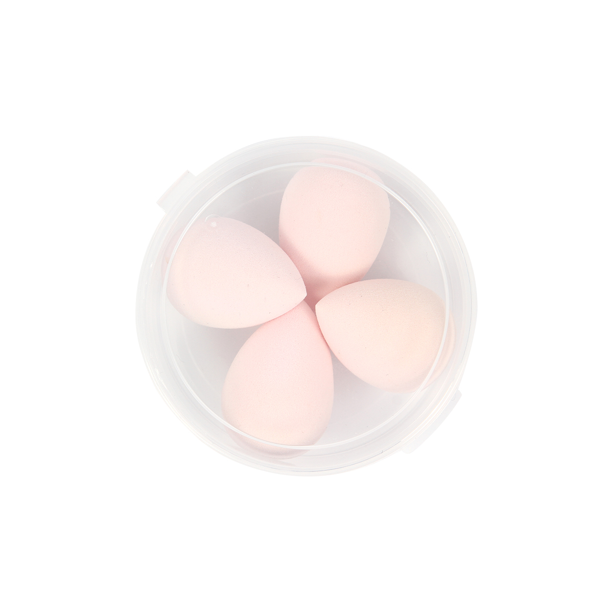 Set de 4 esponjas para maquillaje, fabricadas en poliuretano hidrofílico. Incluyen estuche de plástico. Ideales para llevar en tu bolso por su tamaño compacto.
