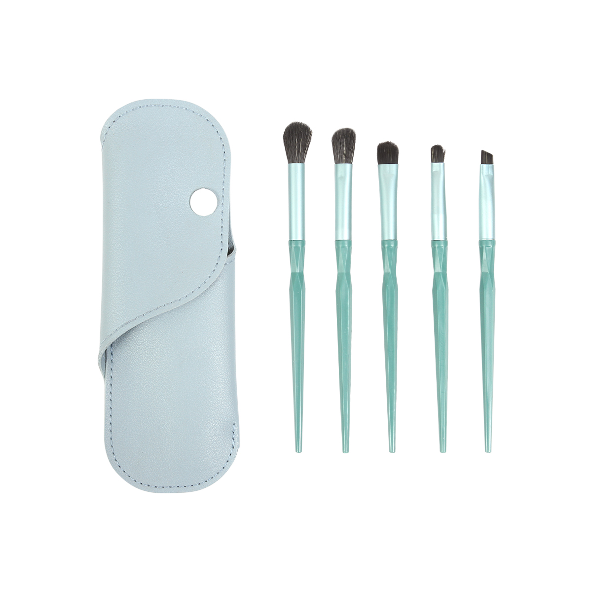 Set de brochas para maquillaje con estuche, fabricadas en poliestireno (PS) con cerdas fabricadas en nailon y férula de aluminio . Incluye 5 brochas y estuche fabricado en cuero sintético (PU).