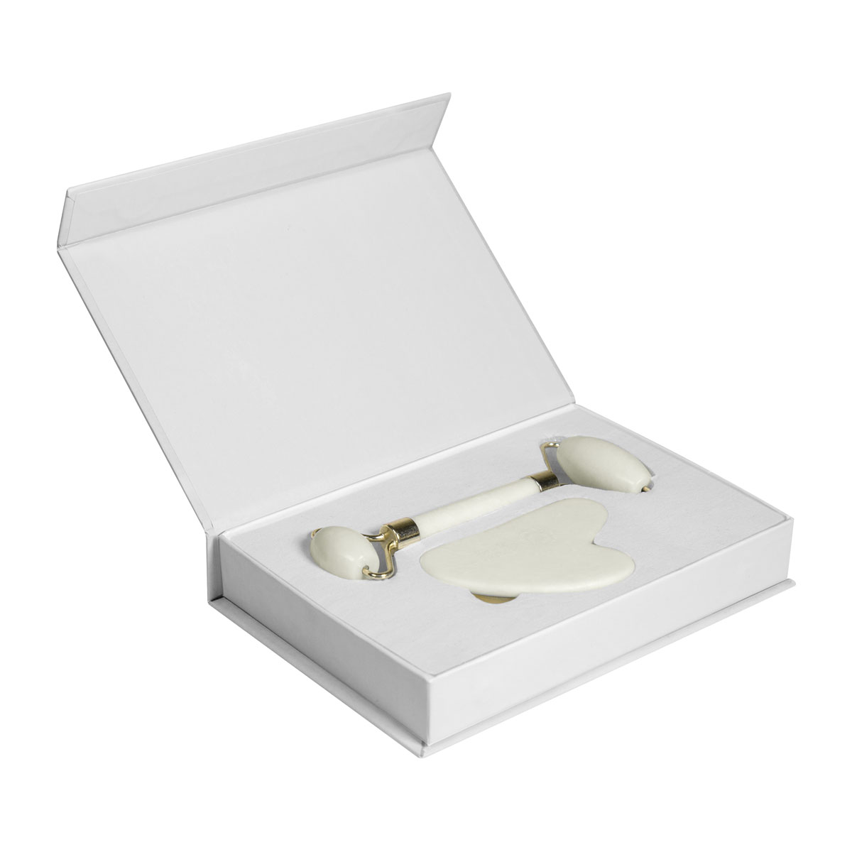 Set masajeador facial de piedra natural. Incluye 1 rodillo para masajear y estimular la piel, ayudando a mejorar la circulación sanguínea y reducir la hinchazón facial; 1 piedra facial, se utiliza para aplicar presión y realizar movimientos de deslizamiento sobre la piel. Ayuda a aliviar la tensión muscular y a mejorar la absorción de productos para el cuidado de la piel. Caja individual con cierre imantado.