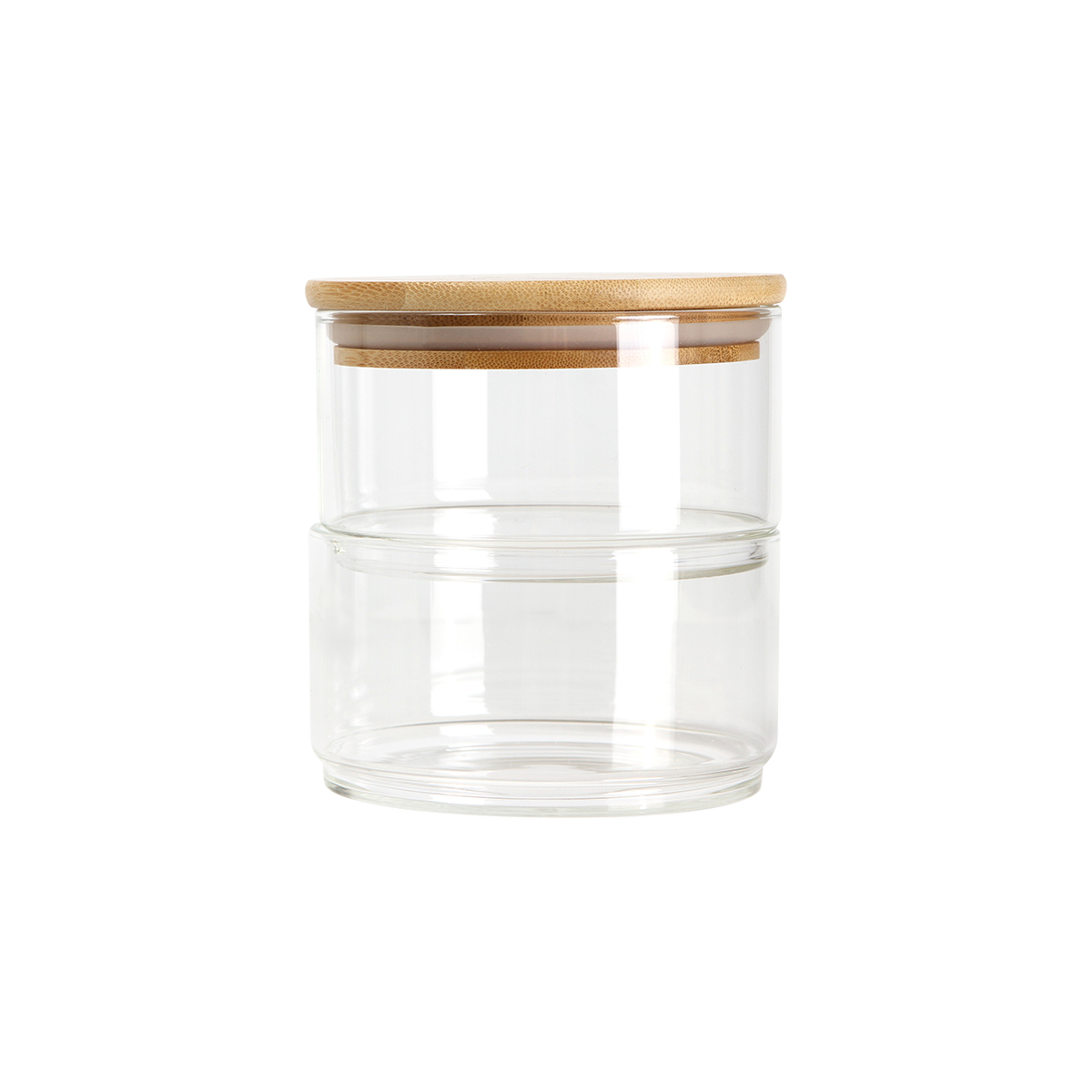 Set de dos contenedores fabricados en vidrio borosilicato transparente con tapa de madera.