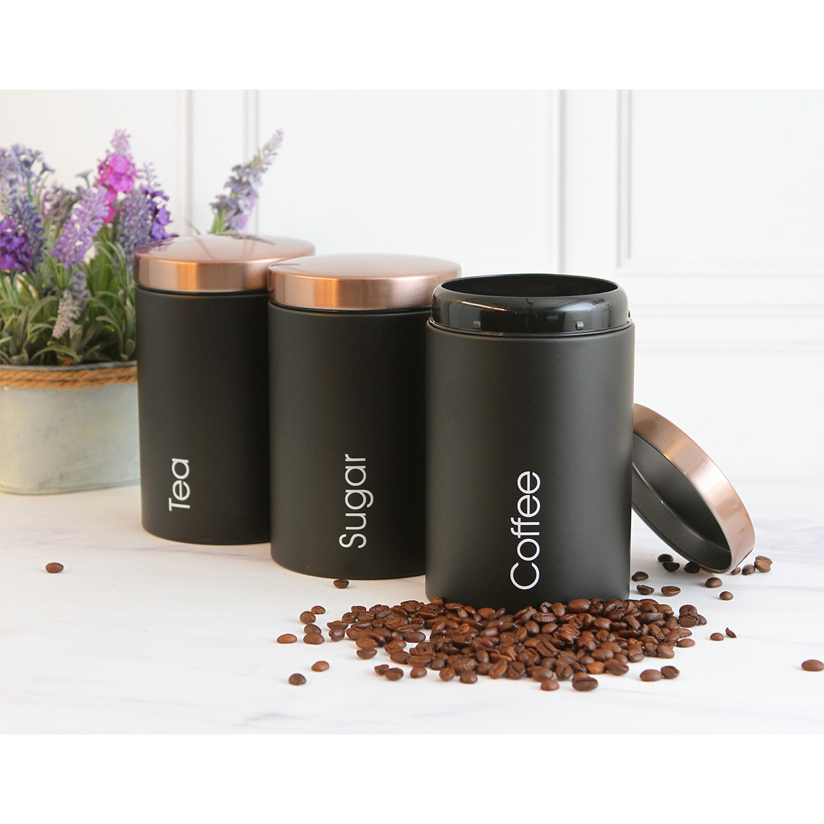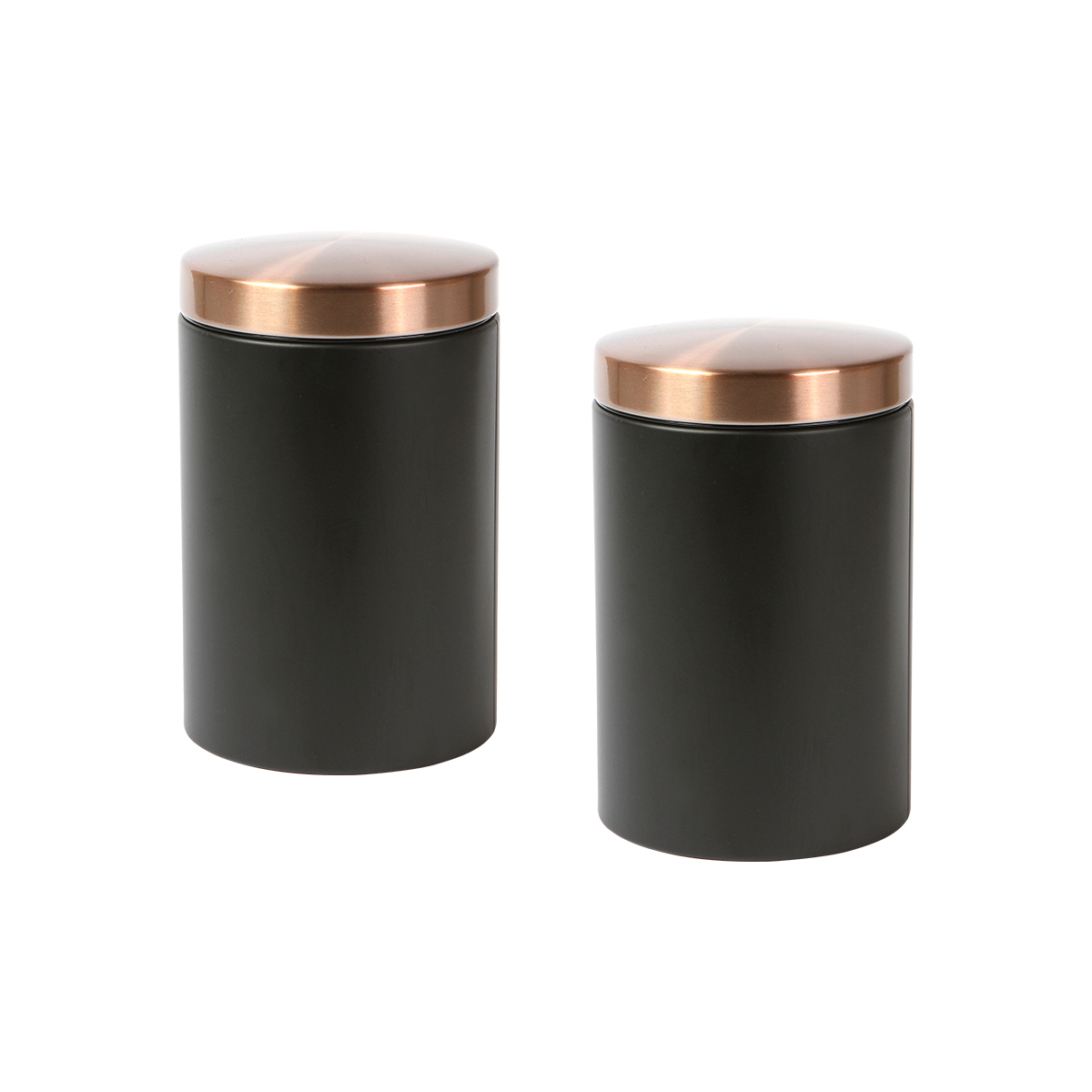 Set de dos frascos fabricados en acero laminado en frío, incluye tapa de acero 410 SS con recubrimiento de cobre. Capacidad de 1,300 ml.