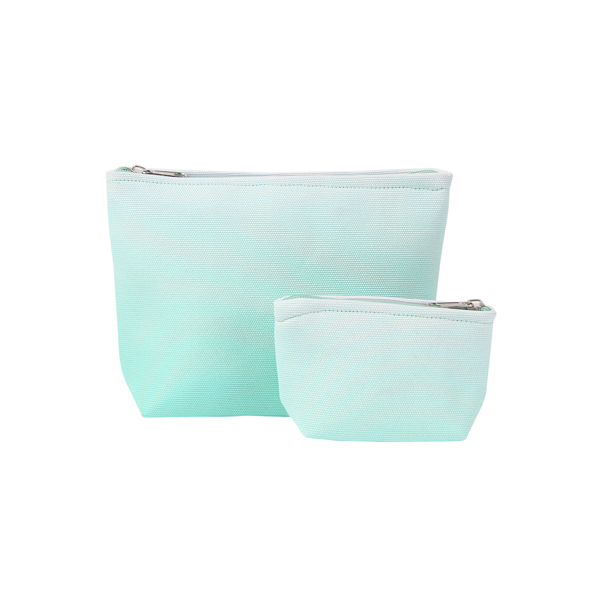 Set fabricado en poliéster, conformado por bolsa principal sin asas y bolsillo con función de monedero, con diseño de color degradado y cierre metálico.