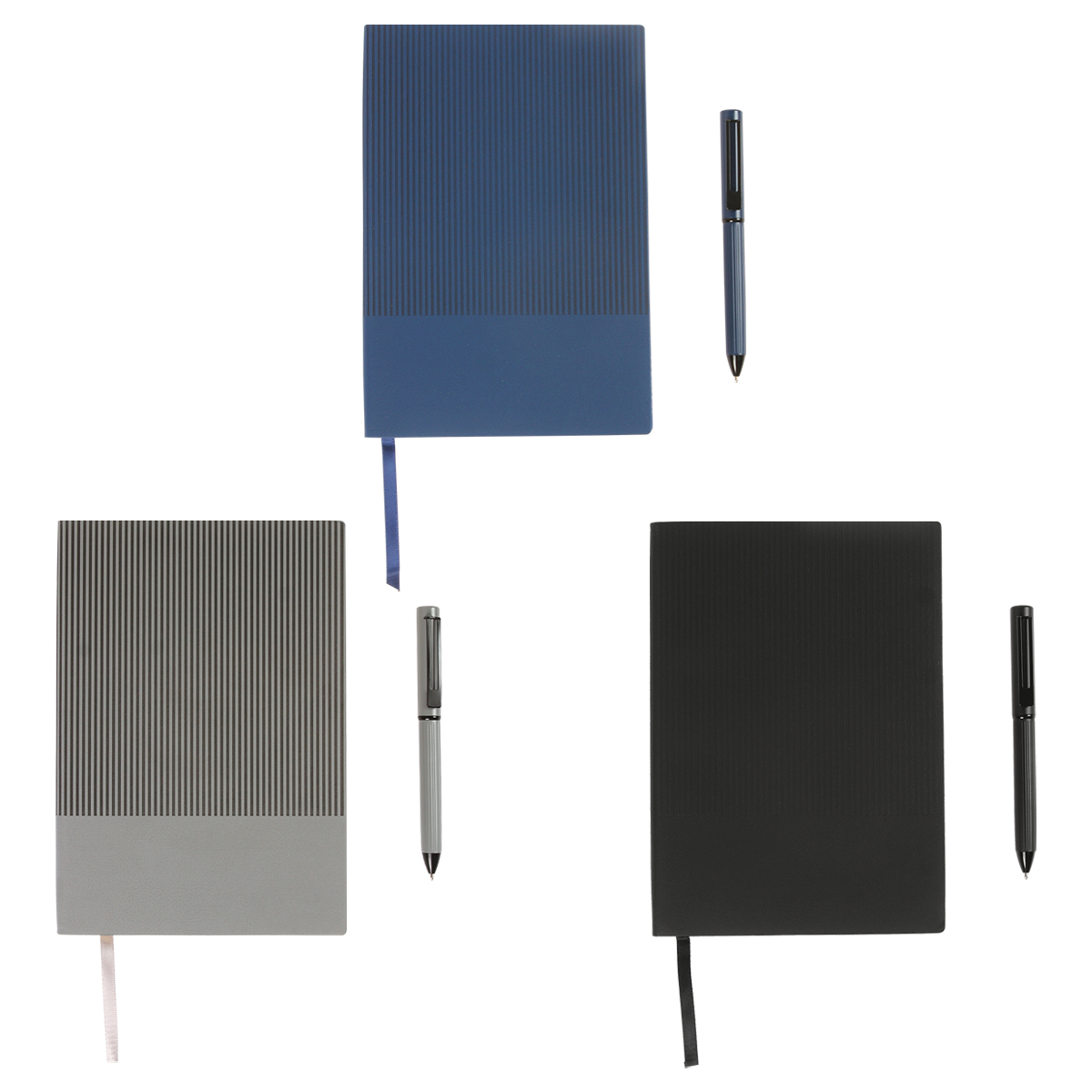 Set ejecutivo, incluye libreta tamaño A5, de 80 g y 100 hojas, bolígrafo. Set empaquetado en caja de regalo con diseño ejecutivo y espacio adecuado para guardar bolígrafo y libreta.