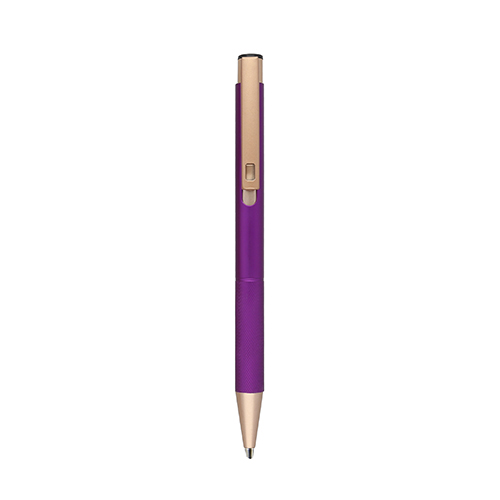 Bolígrafo de aluminio con detalles en el clip y grip, con mecanismo de click.