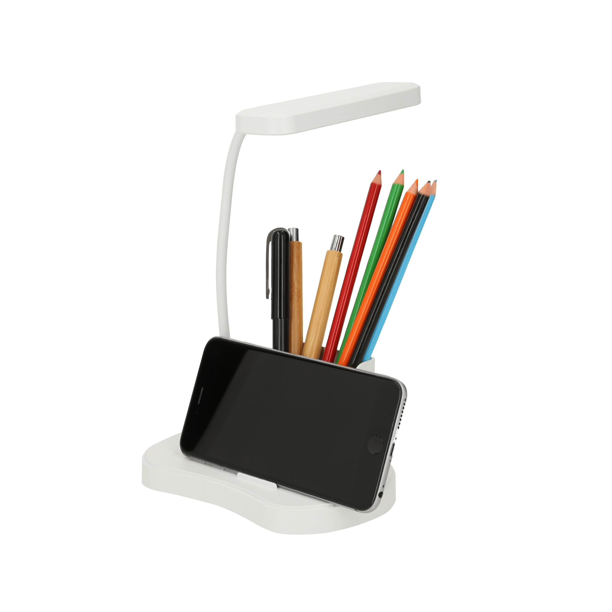 Lámpara para escritorio con multiorganizador, luz cálida y blanca, cargador incluido, potencia de 4w.