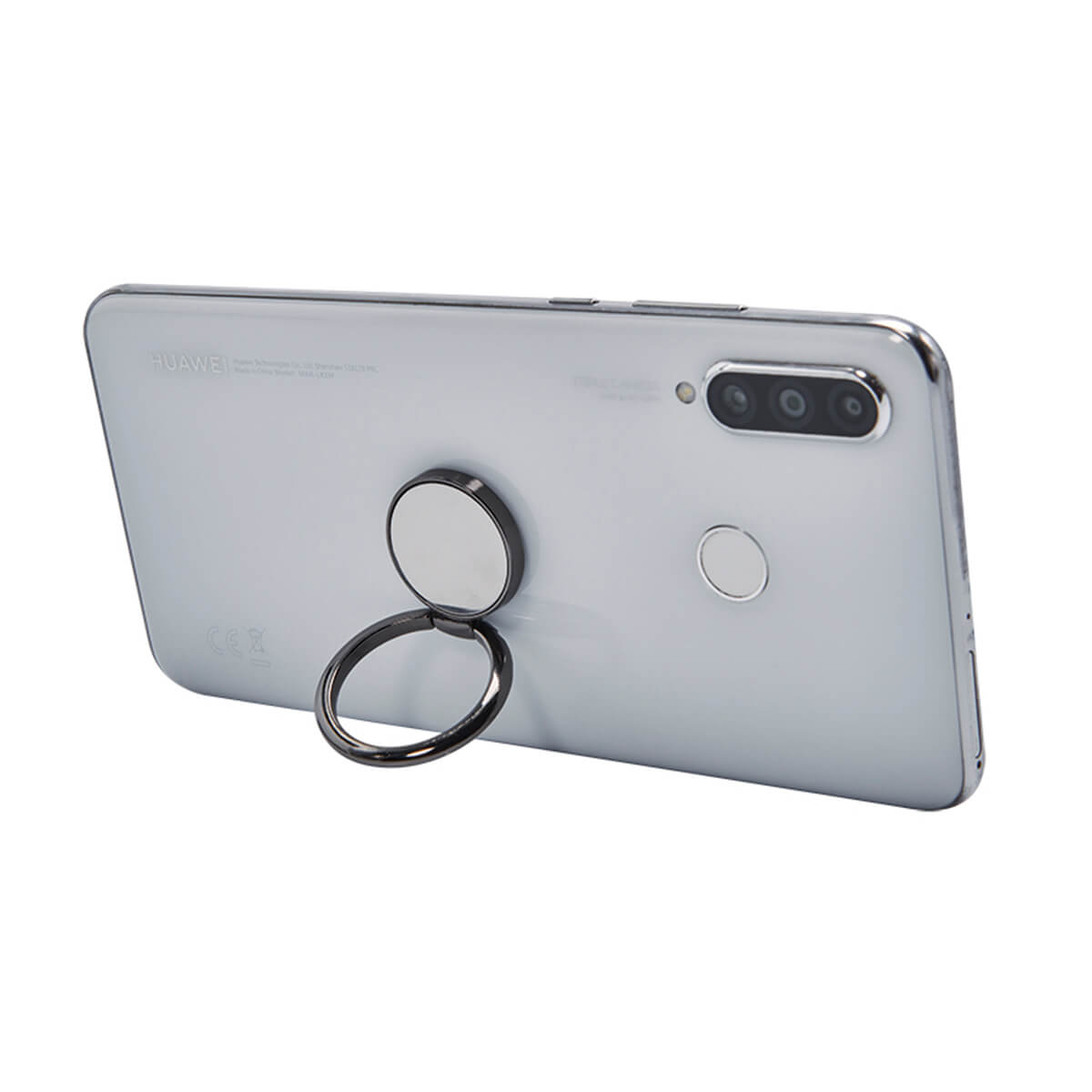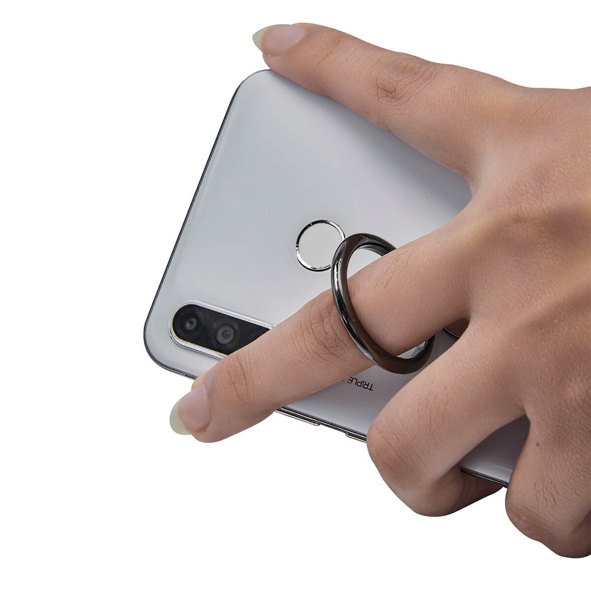 Anillo para smartphone con giro 360°, la base gira 180° para ajustar la visión horizontal o vertical. Incluye adhesivo para pegar directamente sobre el dispositivo (no apto sobre superficies rugosas o impermeables).