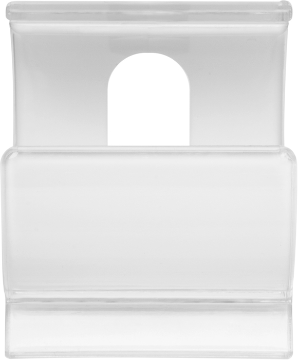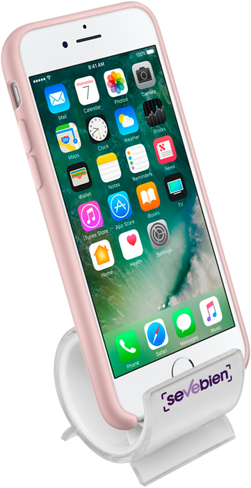 Ø 5,5 x 5 cm. Plástico PS. Soporte para apoyar el celular. Plástico transparente en el exterior y Plástico blanco en el interior. El celular se apoya en el interior del soporte.