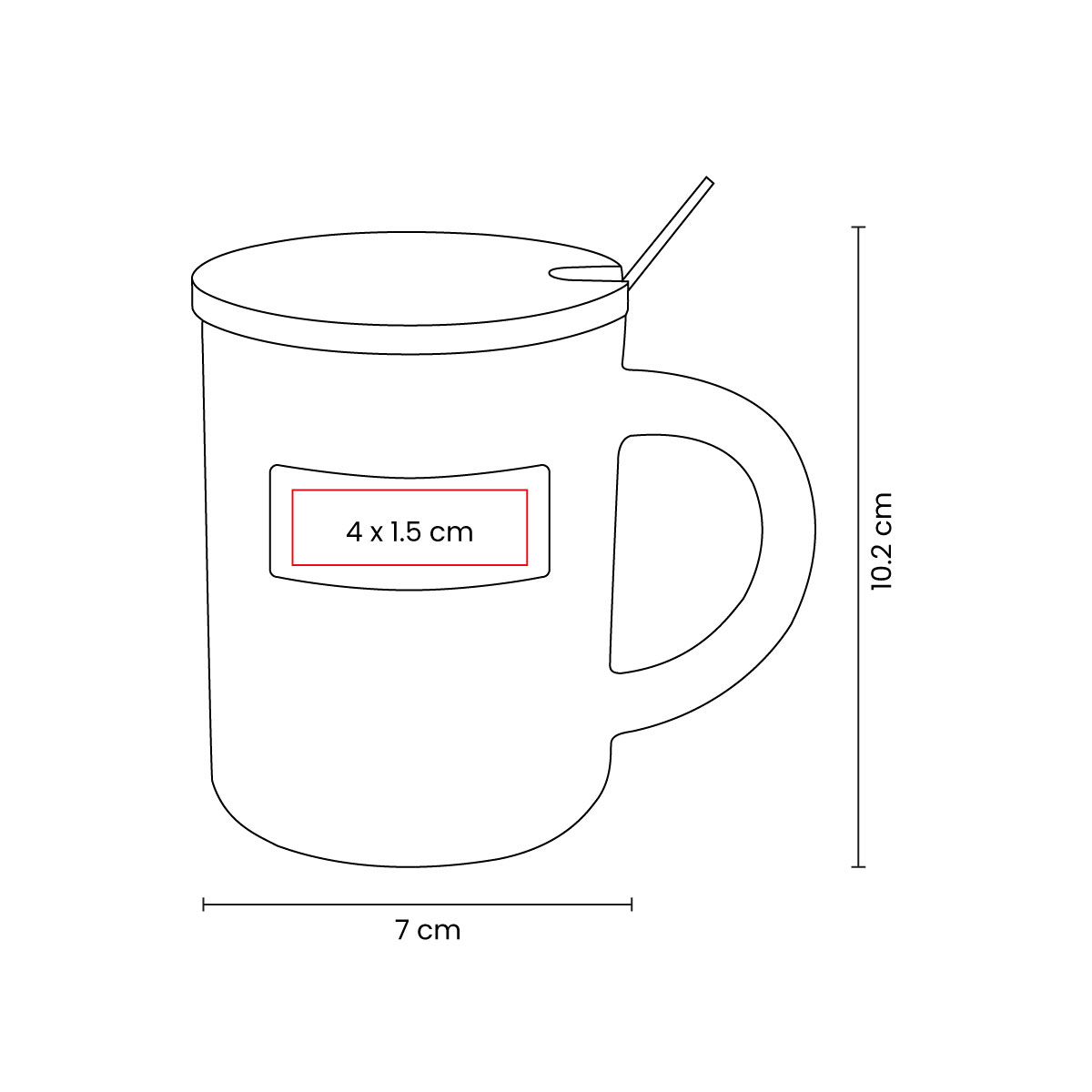 Taza de cerámica con placa metálica para impresión. Incluye tapa de bambú y cuchara metálica. Terminado en color glossy. Incluye caja individual.