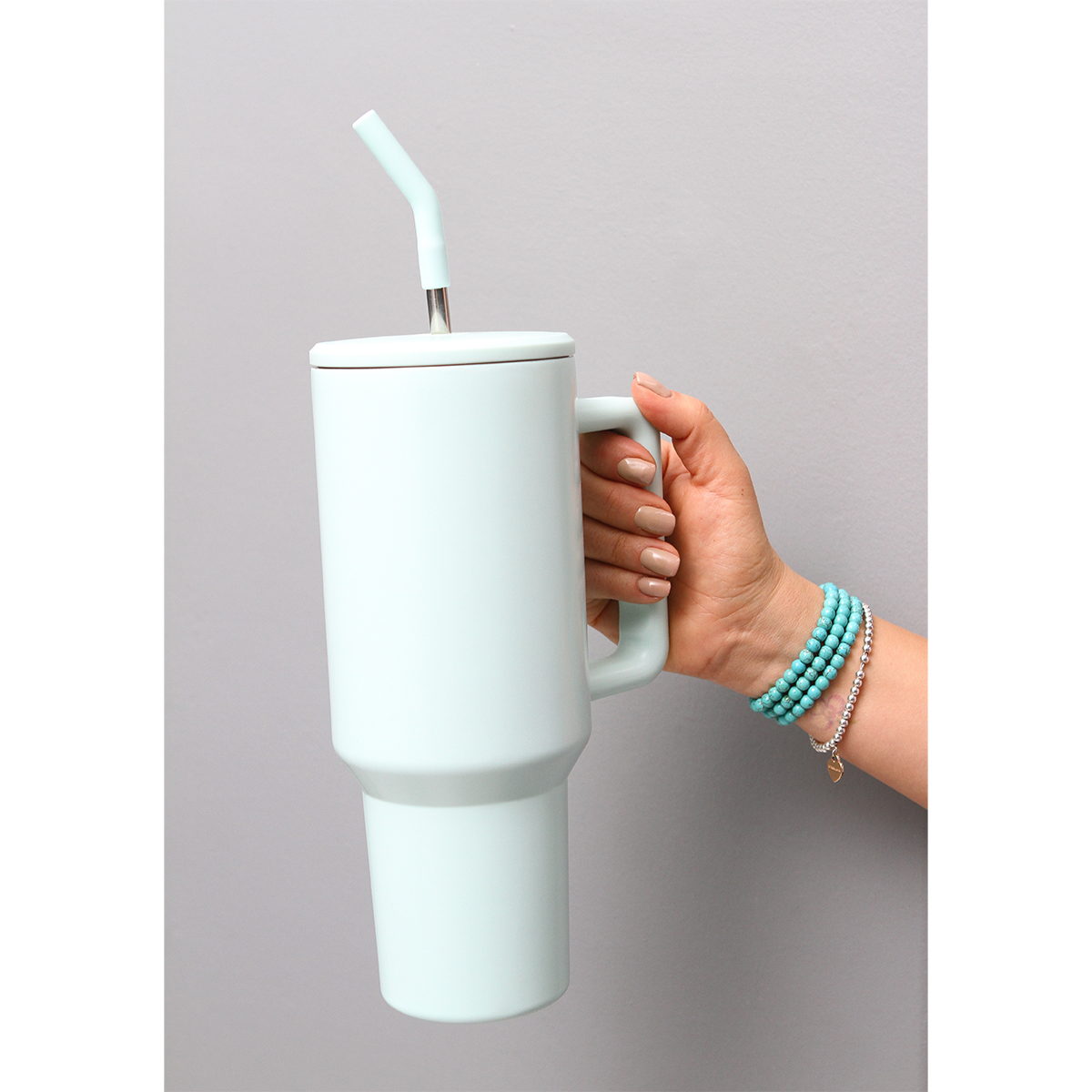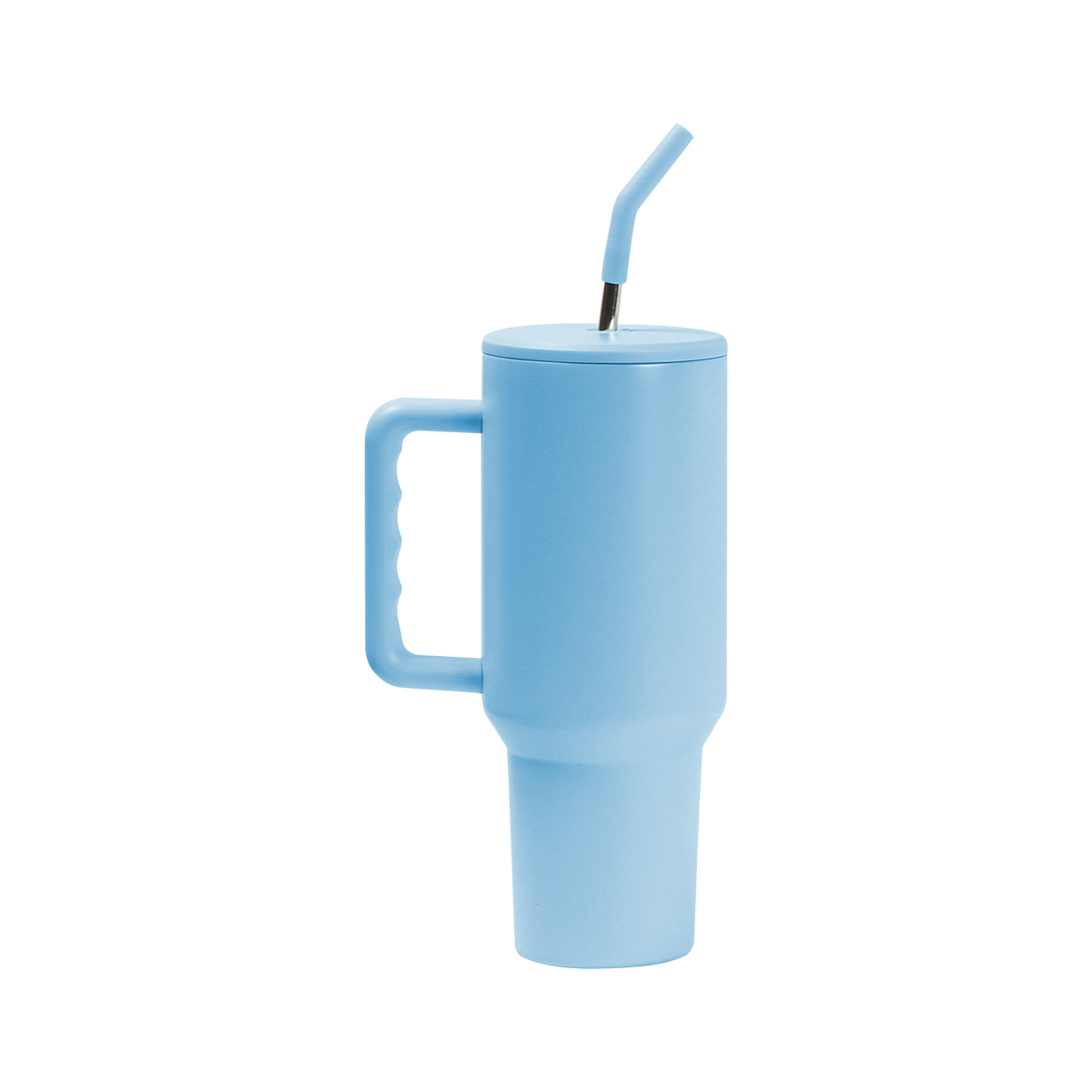 Termo fabricado en acero inoxidable de doble pared, cuenta con tapa con entrada hermética para popote. Capacidad de 1,200 ml. Incluye agarradera y popote.