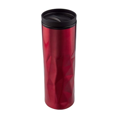 Doble pared. Pared interna plástico, pared externa acero inoxidable. Cuerpo prismático. Tapa de plástico con válvula de seguridad. Incluye caja individual.