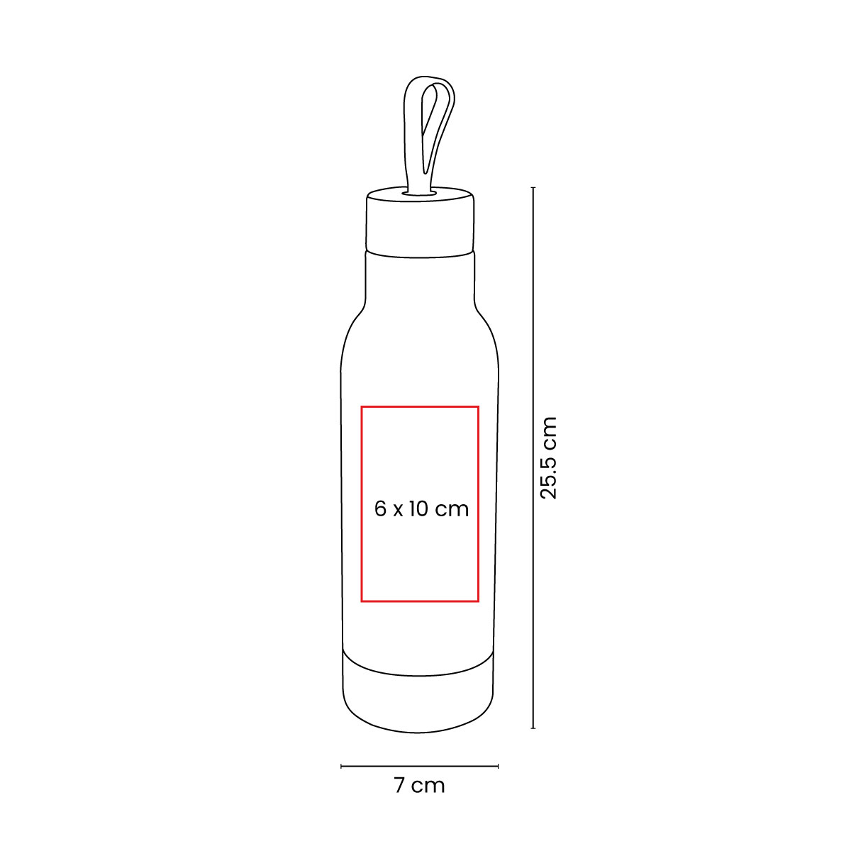 Doble pared. Cerrado al vacío. Pared interna y externa de acero inoxidable. Tapa de bambú con sistema de rosca, asa de silicón y base de bambú. Mantiene temperatura caliente 6 hrs y temperatura fría 12 hrs. Incluye caja individual.
