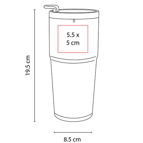 Doble pared. Pared interior acero inoxidable, pared exterior plástico. Tapa de plástico en dos posiciones. Indicador de grabado para el sensor de luz led, el logo se enciende al grabar. Cuenta con botón de encendido en la base. Incluye 2 baterias de botón, instructivo y caja individual. No usar en microondas ni lavavajillas.
