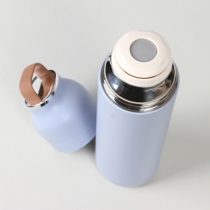 Termo de acero inoxidable doble pared con asa de silicón en color café. Fabricado en materiales de grado alimenticio, mantiene bebidas frías o calientes por un largo tiempo, no usar en microondas. Capacidad de 500 ml. Incluye caja de cartón individual.