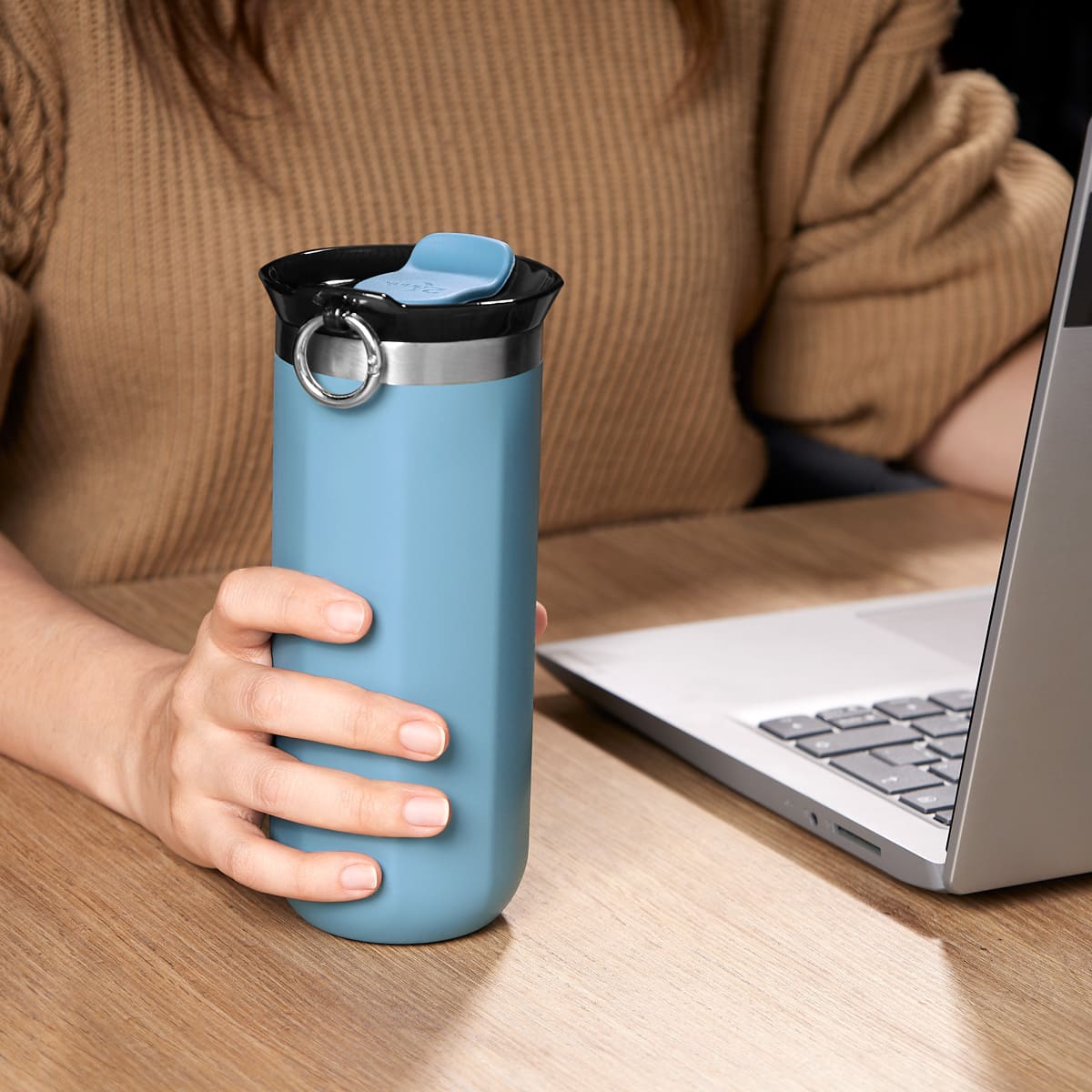 Doble pared. Cerrado al vacío. Pared interna y externa de acero inoxidable. Tapa con sistema de rosca, sobretapa de silicón y aro metálico removible. Mantiene temperatura caliente 6 hrs y temperatura fría 8 hrs aproximadamente. Incluye caja individual.