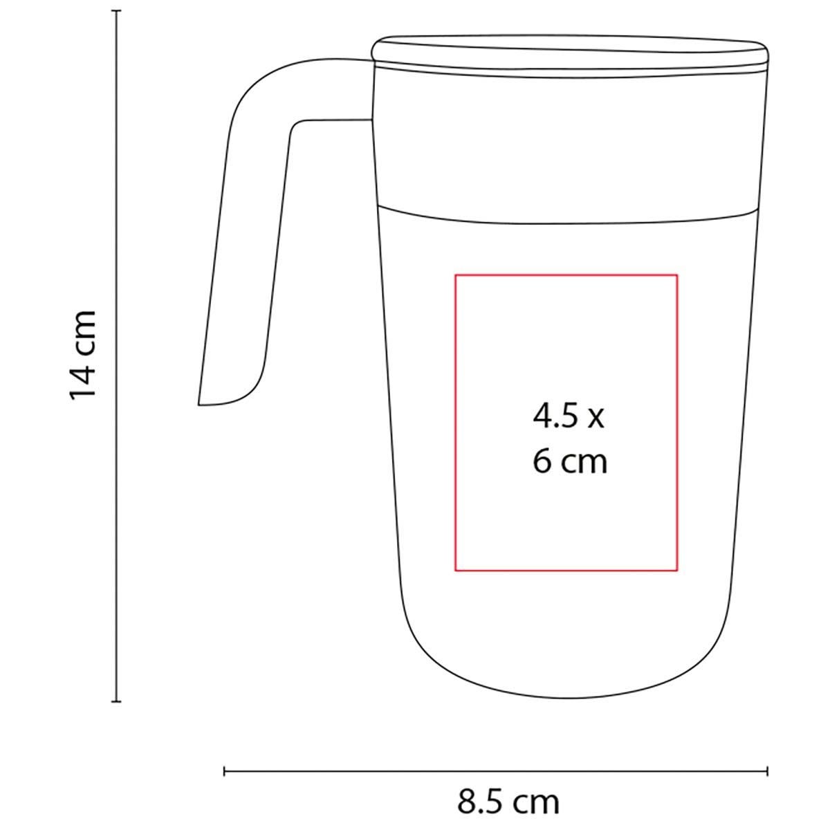 Doble pared. Pared interna plástico, pared externa acero inoxidable. Tapa de plástico con válvula de seguridad. Incluye caja individual.
