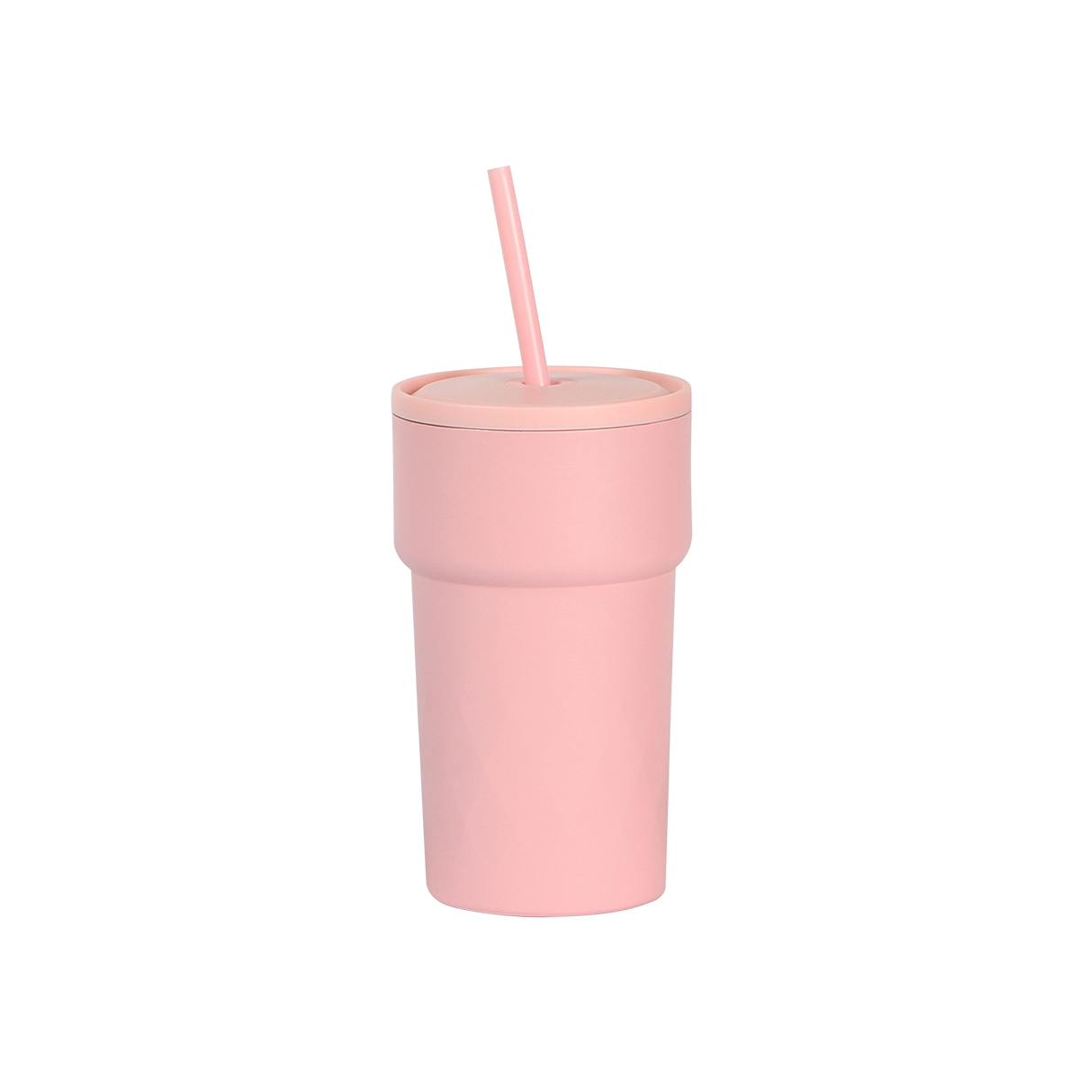 Termo doble pared fabricado en acero inoxidable 304 (interina) y 201 (externa). Capacidad de 510 ml. Incluye tapa y popote, caja de color individual. Con pequeño relieve en la parte de la agarradera.