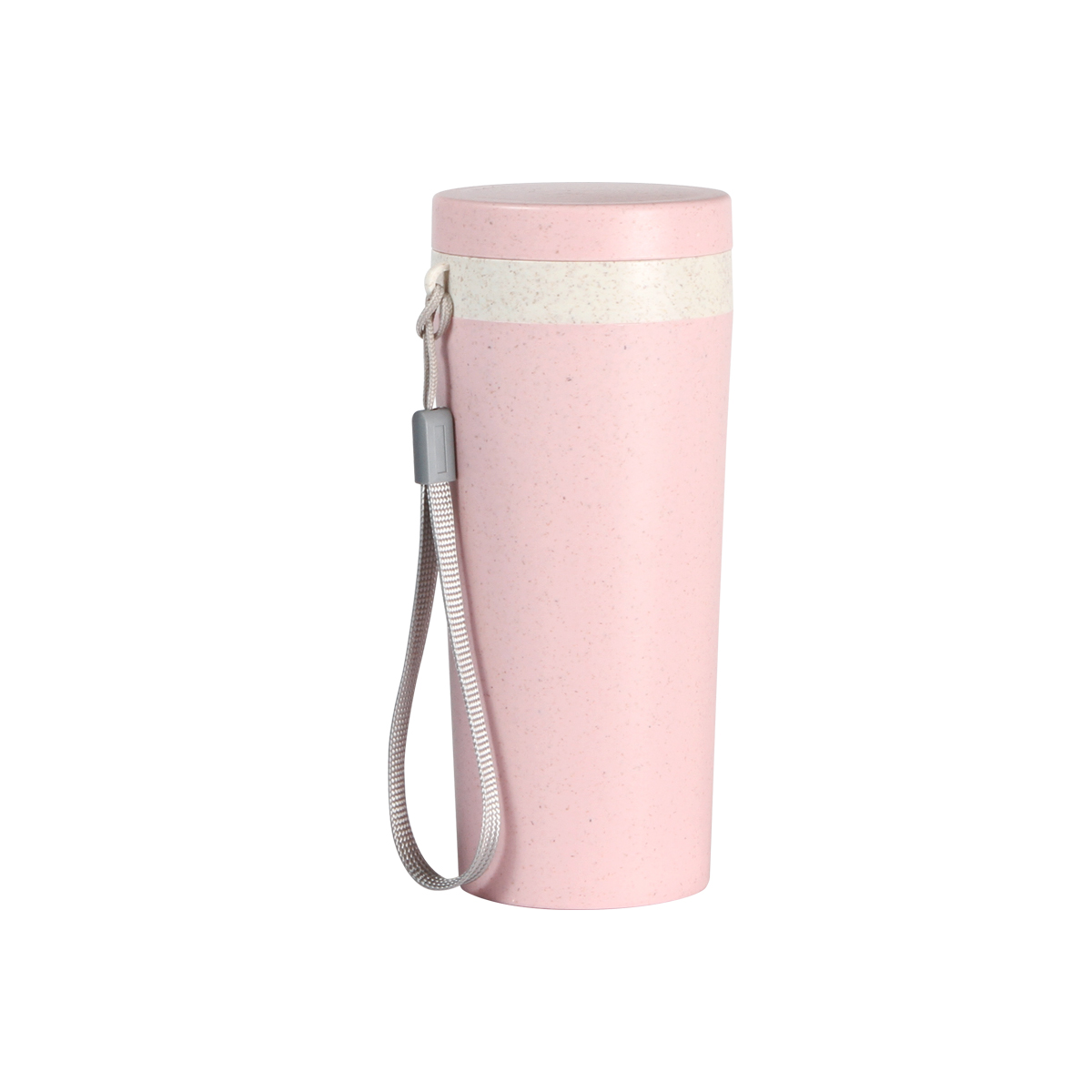 Termo doble pared fabricado en material Ecológico (Fibra de Trigo) con tapa de polipropileno con correa para fácil transportación. Capacidad de 300 ml. Producto biodegradable.