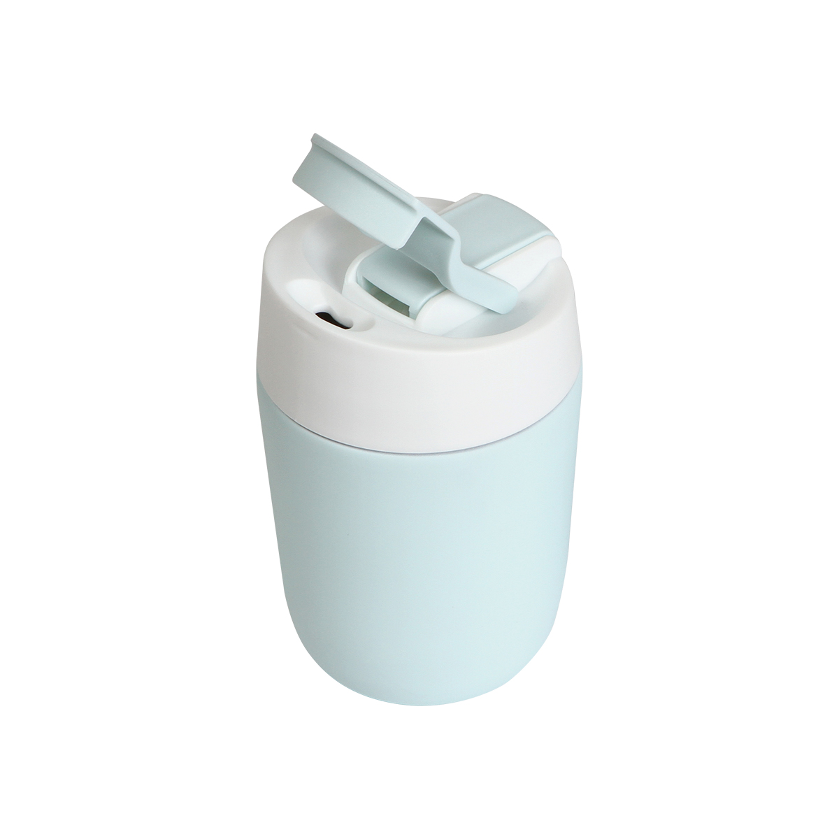 Vaso térmico de acero inoxidable doble pared con recubrimiento suave, tapa de Polipropileno y doble tapadera de seguridad y chupete integrado. Fabricado en materiales de grado alimenticio, mantiene bebidas frías o calientes por un largo tiempo. No usar en microondas. Capacidad de 350 ml. Incluye caja de cartón individual.