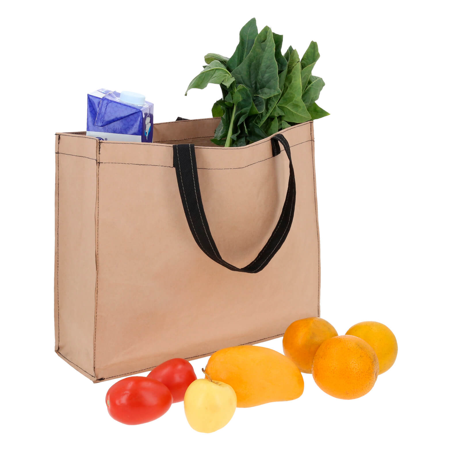 Bolsa ecológica de cartón cosida y asa de non woven.