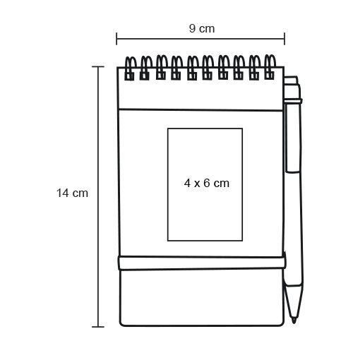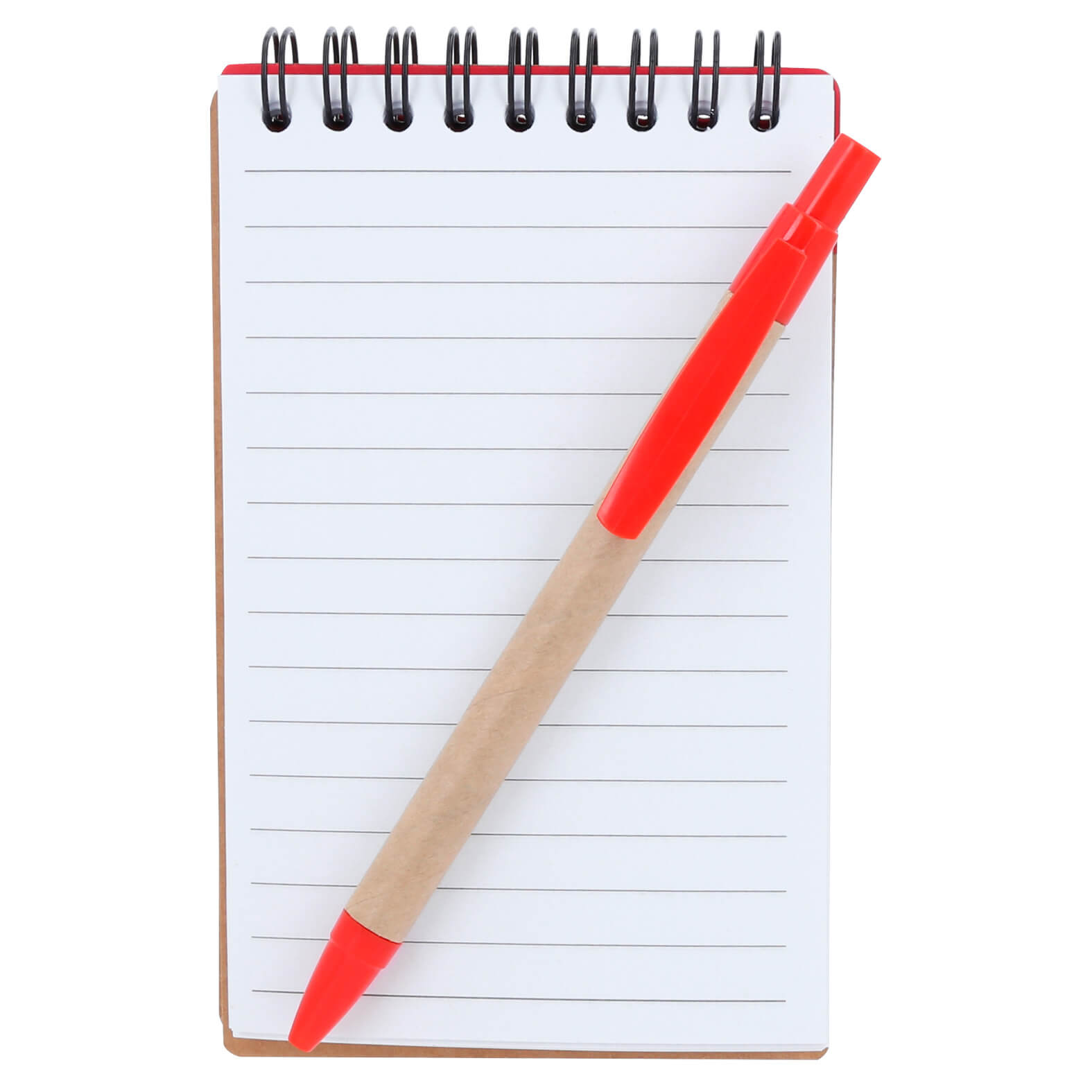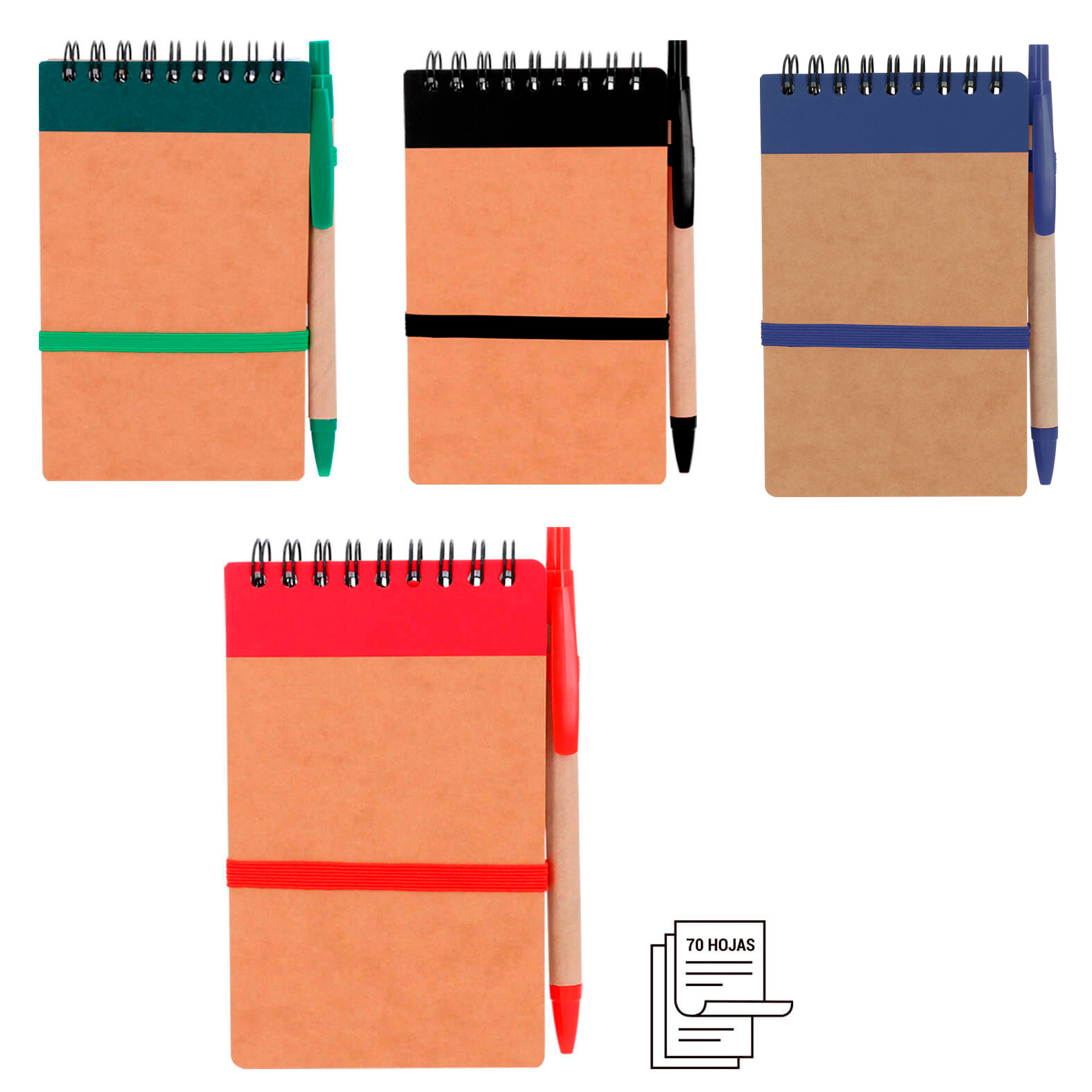 Libreta pocket de papel reciclado y bolígrafo, incluye: 70 hojas rayadas.